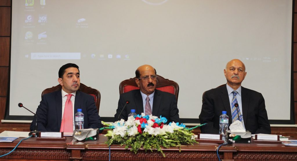 Rector Foundation University Islamabad, Maj Gen Muhammad Kaleem Asif HI (M) (Retd) presented the university plaque to the honorable guests, the Ambassador of the Republic of Tajikistan in Pakistan, His Excellency Mr. Shafiev Saidjon Ismoil and Senator Mushahid Hussain Syed. Ambassador of the Republic of Tajikistan in Pakistan, His Excellency Mr. Shafiev Saidjon Ismoil Tajikistan presented the Tajikistan’s national dresses, caps and books to Senator Mushahid Hussain Syed, Rector FUI, Pro Rector FUI and HoD Dr Hina Shahid as a token of appreciation.