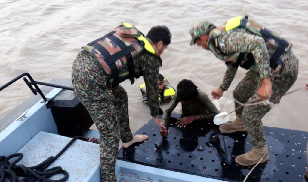 In the latest developments in collaboration with District Government PN Emergency Response Teams evacuated over 1000 personnel from various remote villages of Chuhar Jamali area. Additionally, 40 local fishermen including children were rescued from Kajhar and adjoining Creeks.