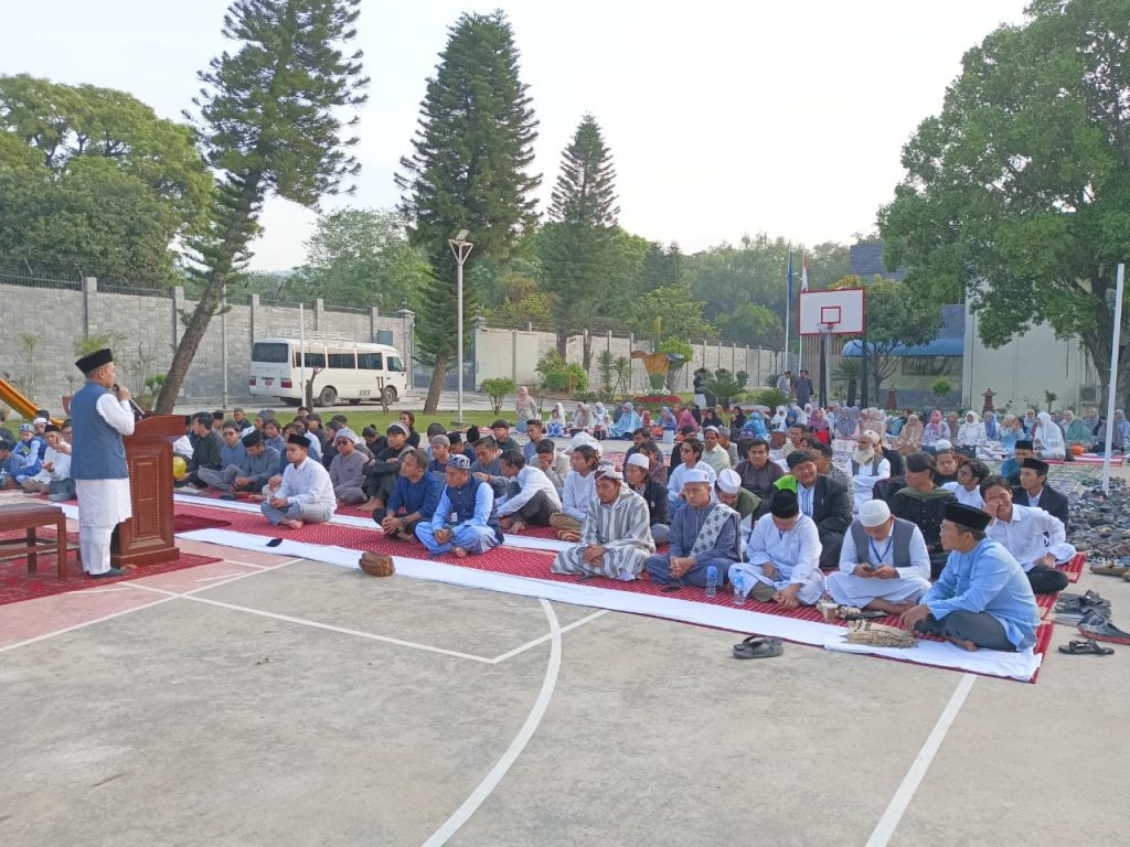 The Eid prayer was held on the open space of the Embassy amid moderate weather during Spring time. The congregation solemnly performed the Eid prayer led by Br. Muhsin Al Fatih Nasir as an Imam and continued to listen to Eid sermon addressed by Br. Farhan Aflah Abdillah as a Khatib. Both of them were students of Islamic Studies at the International Islamic University Islamabad (IIUI).