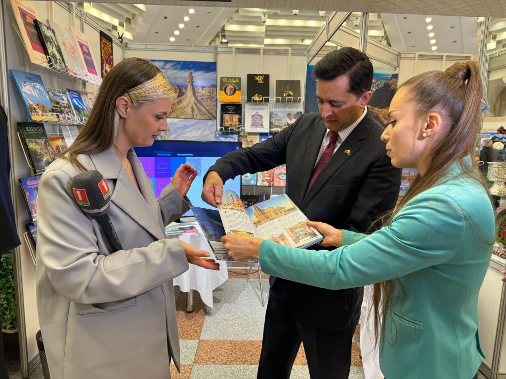 The Ambassador of Pakistan to Belarus Sajjad Haider Khan received the Information Minister of Belarus at the Pakistan stand established by the Embassy. The Ambassador briefed the Minister on the Pakistan’s participation in this import fair and highlighted Pakistan’s vibrant literary heritage. He also presentation a book “Colours of Pakistan” to the Information Minister, underscoring the depth and beauty of Pakistan’s landscape and culture.