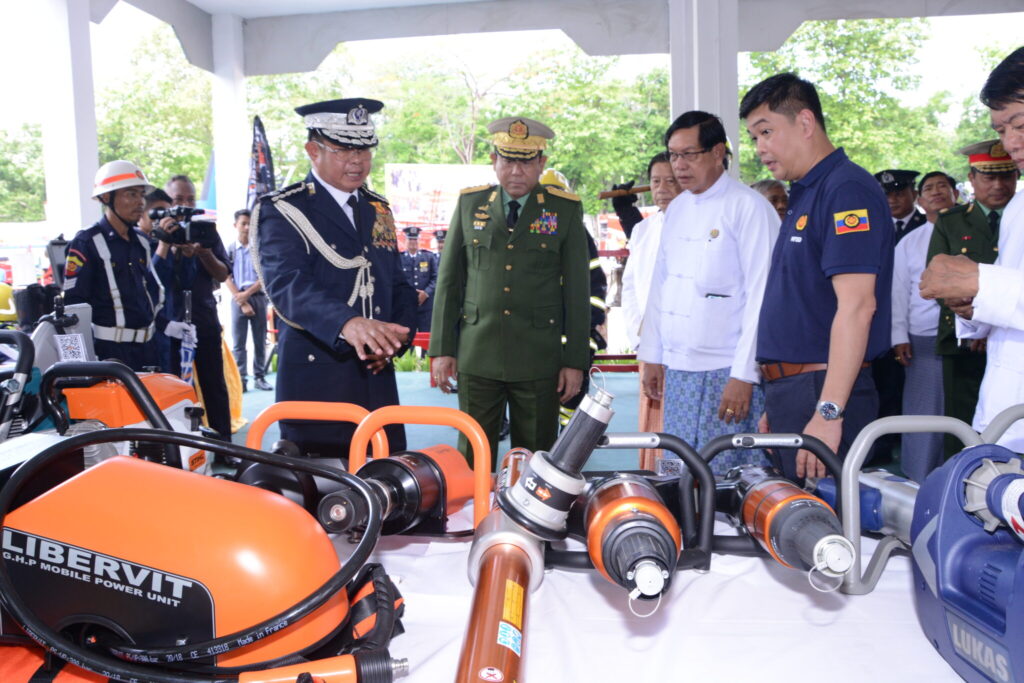 The event concluded with the minister and attending dignitaries touring an exhibition showcasing modern firefighting equipment and search and rescue tools, highlighting Myanmar’s ongoing investment in safety and emergency preparedness.