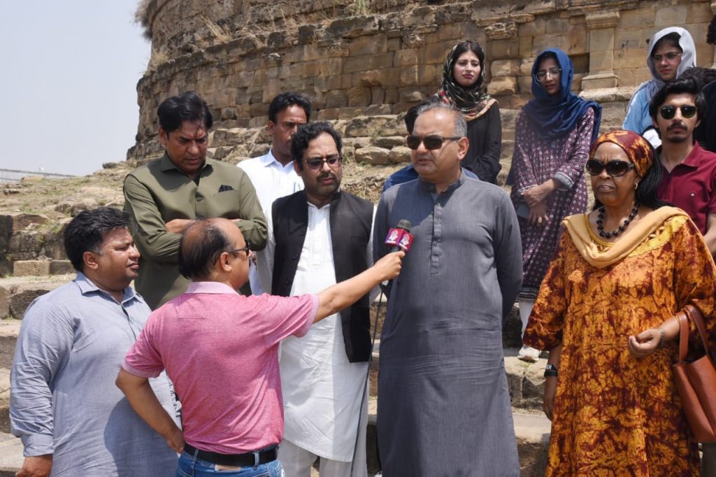 Islamabad, The Gulf Observer: Under the leadership of Minister of State Dr. Ramesh Kumar Vankwani, a visit was made to the historic Mankyala Stupa near Rawat Rawalpindi under the auspices of the Prime Minister’s Task Force for Gandhara Tourism. On this occasion Ambassador of Kenya, students, media men and representatives of civil society were also present in large number.