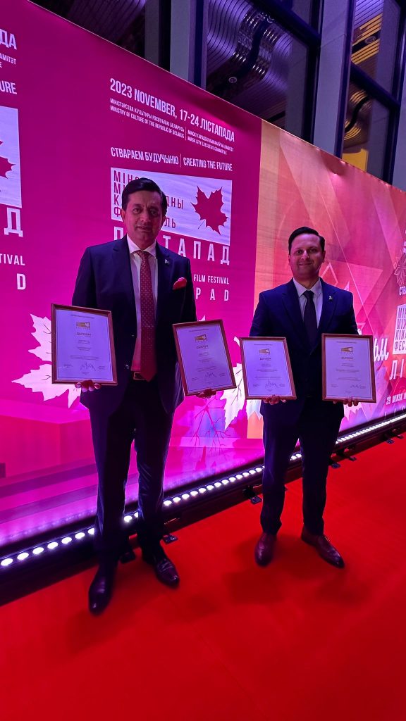 Minsk, The Gulf Observer: The Ambassador of Pakistan to Belarus, Sajjad Haider Khan, was honored to receive four prestigious awards during the Closing Ceremony of the Minsk International Film Festival “Listapad” held on November 24, 2023. The event was opened by the Prime Minister of the Republic of Belarus.
