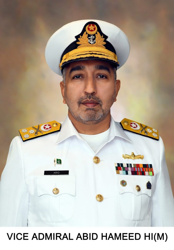 Vice Admiral Abid Hameed was commissioned in Marine Engineering branch of Pakistan Navy in 1988. During his illustrious service career, the Admiral has held diversified Command & Staff appointments. His Command appointments include Managing Director PN Dockyard and Commander Logistics. His salient Field and Staff appointments include General Manager Ship Rebuild & Construction at PN Dockyard, and Assistant Chief of Naval Staff Projects, Works and Maintenance at Naval Headquarters. The Admiral is a graduate of Pakistan Navy War College Lahore, National Defence University Islamabad. Presently, Vice Admiral Abid Hameed is appointed as Deputy Chief of Naval Staff (Material) at Naval Headquarters. In recognition of his illustrious career, the Admiral has been awarded Hilal-i-Imtiaz (Military).